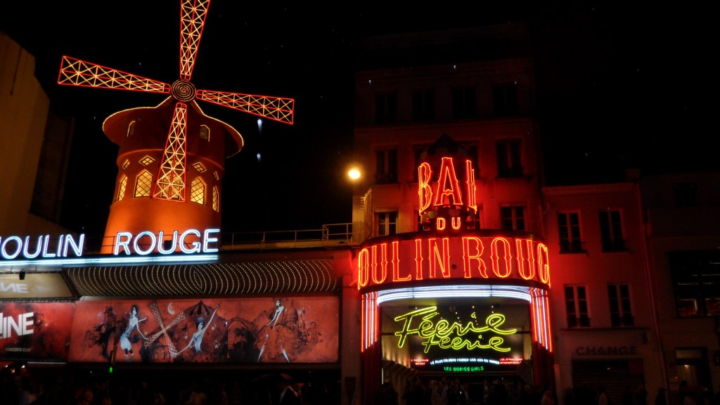 But last night was by far our most interesting. We set out to see ‘Moulin Rouge’ in the naughty area of Paris. An 11pm show meant it was a late start, and some Metro works meant the train dropped us a long way from where we needed to be, and at the dodgiest part of town imaginable. Think of a Parisian Claymore after dark but 100 times worse (with apologies to anyone who actually lives in Claymore). Hordes of dodgy men lean against shuttered shops and leer at anyone who walks past. Tension and humidity hang heavy in the air, with a sense that at any time a thinly contained threat of violence could erupt. This was not a place to pull out a Lonely Planet and a compass to plot our next transportation option so after walking in confused circles for 15 minutes (I just kept muttering to Krys ‘just keep moving’) we basically leapt into a passing cab to safety.