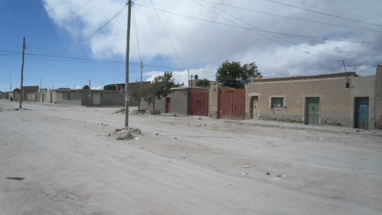 We headed down to the Bolivian Salt Flats which is a massive expanse of pure white, surrounded by red desert and bound by huge snow capped mountain ranges. And interspersed across the landscape are colourful lagoons, hot springs and bubbling mud geysers. The base for the Salt Flats is a town called Uyuni. And what a pretty town it is; uneven dirt roads fringed with an expanse of red, dusty nothingness buried under piles of discarded plastic bags. I can only imagine that ‘Uyuni’, translated into English means ‘ sh#thole’. It’s like the town knows that you need it so couldn’t be bothered even tying its hair back or putting on a little eye shadow.
